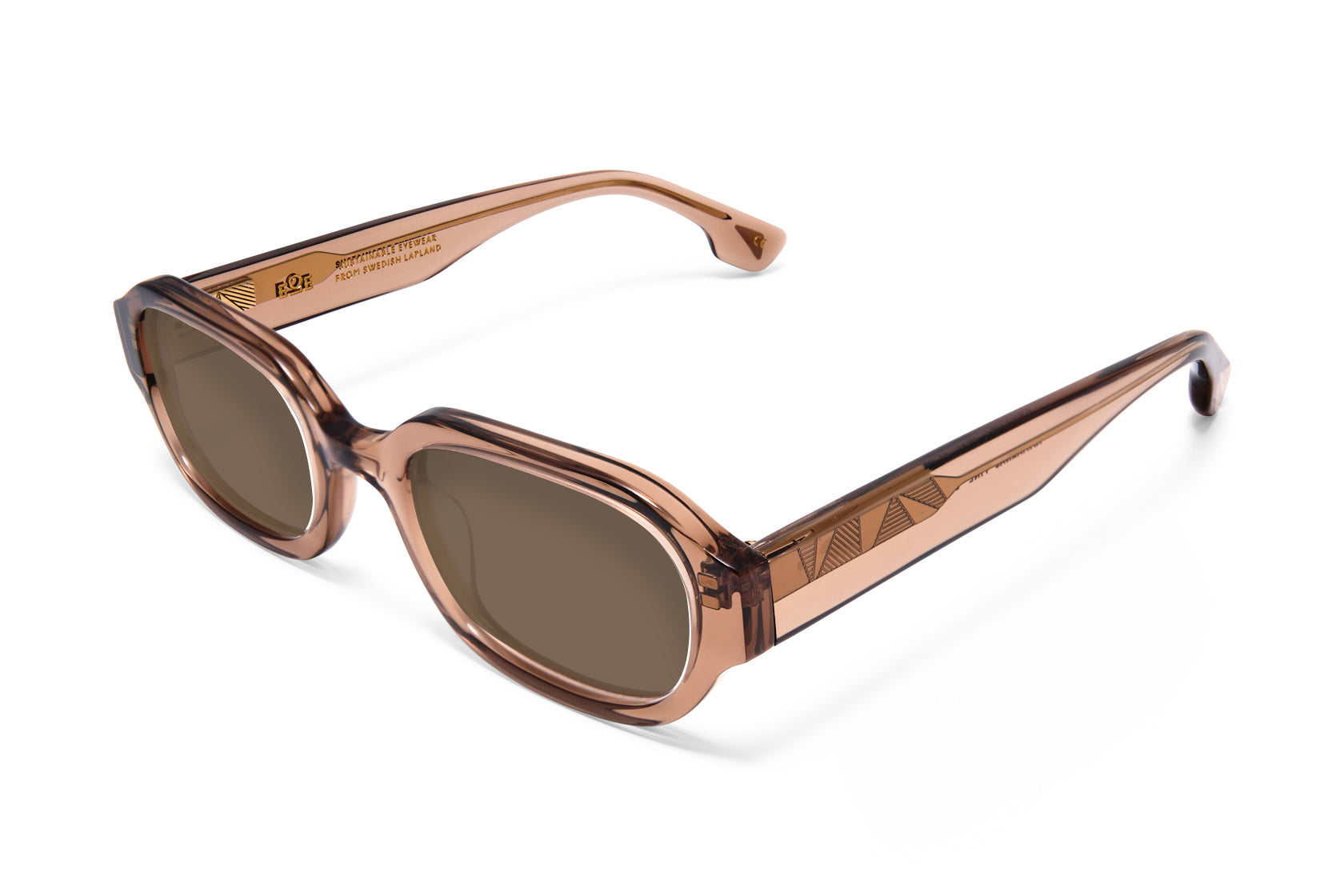 The frame AMMARNÄS is a square bio acetate frame with a semi chunky expression. The temple has the EOE Mountain core pattern inspired by the shape of a mountain range, and the end-tips feature triangular inserts of sustainably and ethically sourced reindeer antler. The sunglasses feature bio-nylon lenses that provide 100% protection from UVA, UVB, and UVC rays.