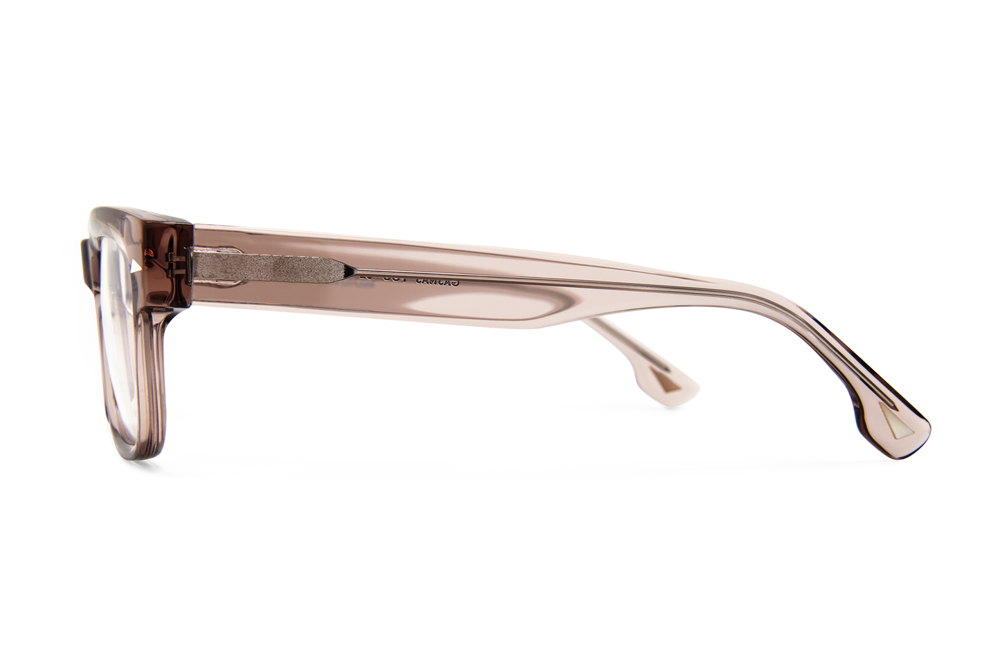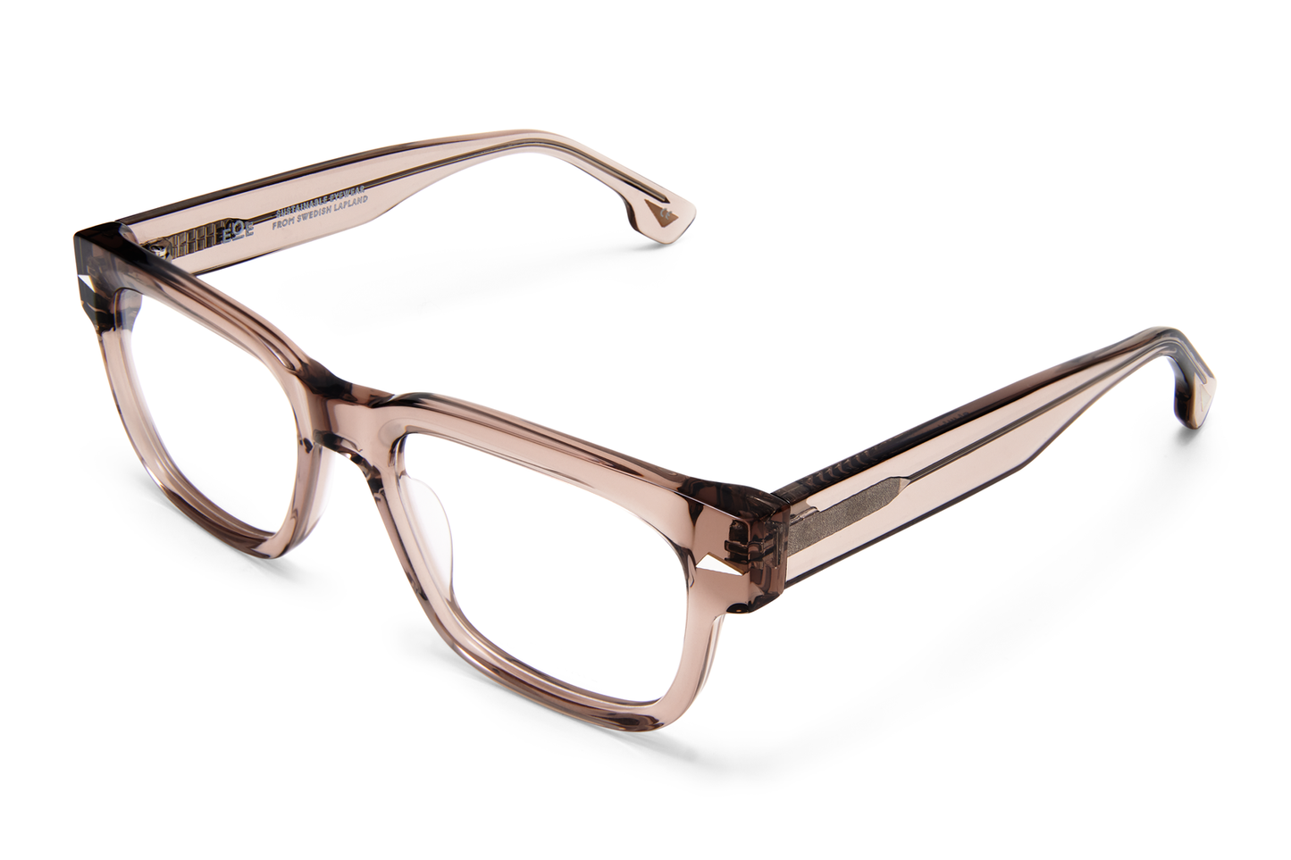 GÁJNAJ is a chunky square frame crafted from biodegradable acetate and recycled Swedish steel. The front and end-tips feature inlays of sustainably and ethically sourced reindeer antler.