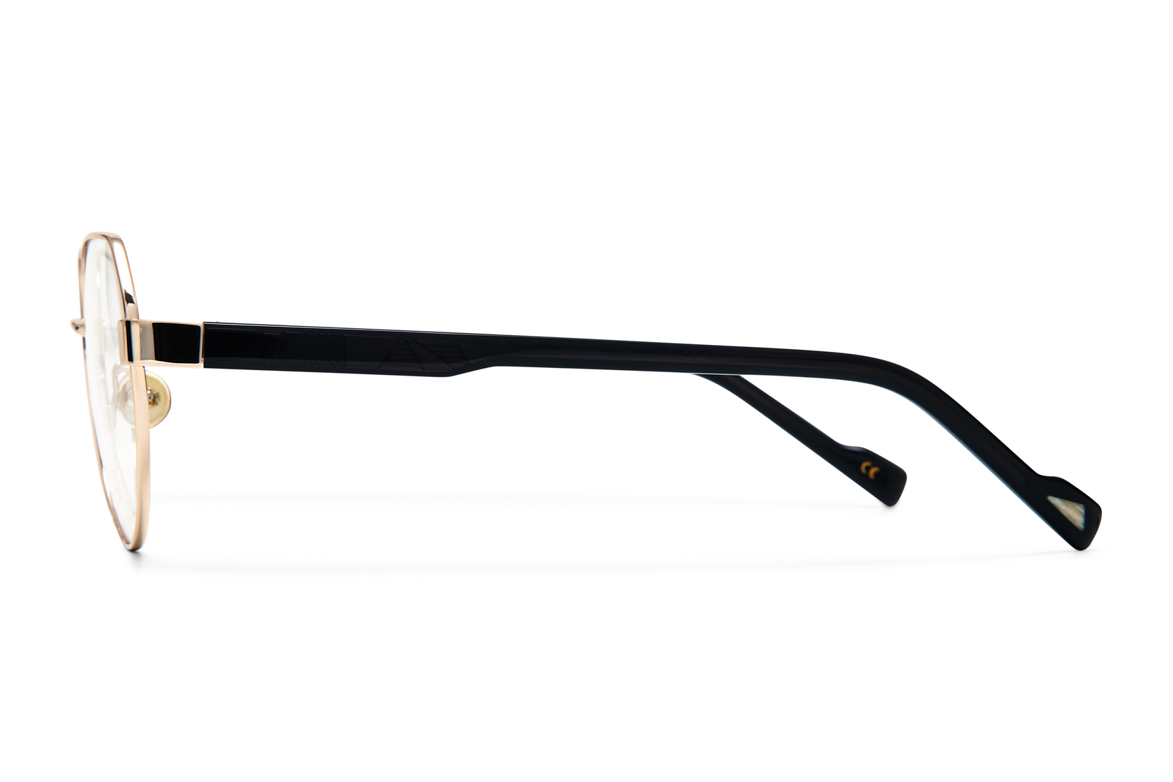 LILLSKÄRET is a petite round frame crafted from recycled Swedish steel and biodegradable acetate, that features end-tips with inlays of sustainably and ethically sourced reindeer antler.