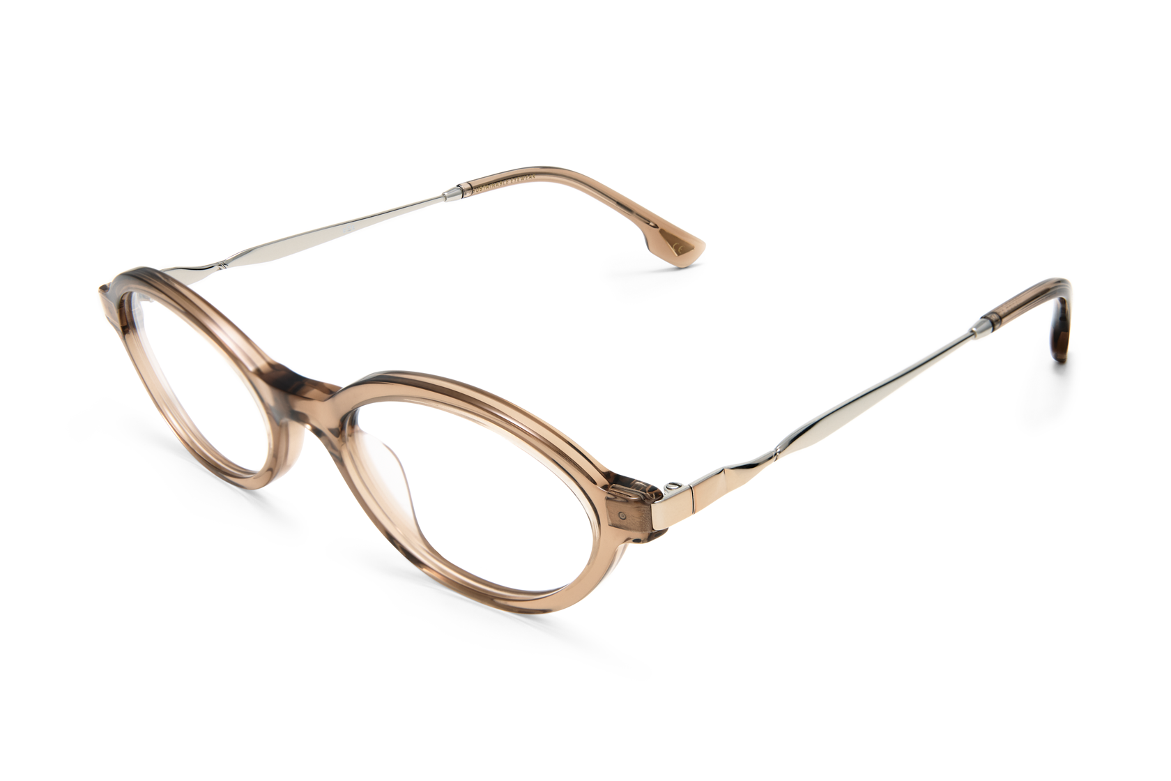 SÀDEK TWIST is a petite oval frame crafted from biodegradable acetate and recycled Swedish steel. The end-tips feature inlays of sustainably and ethically sourced reindeer antler, and the temples a twisted detail reminiscent of a turning branch.