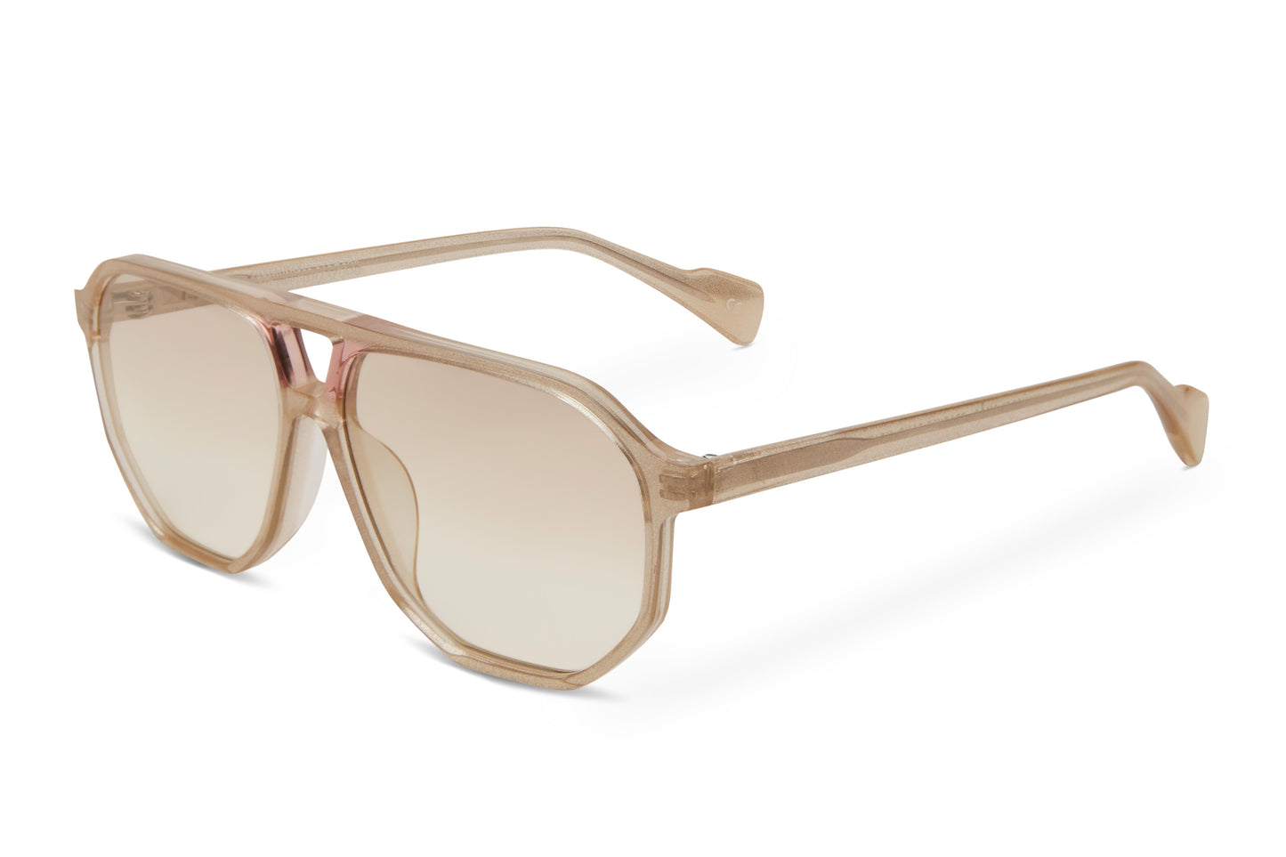 VIPPVEDEL Småa is a petite aviator frame crafted from biodegradable acetate production waste and recycled Swedish steel. The sunglasses feature bio-nylon lenses that provide 100% protection from UVA, UVB, and UVC rays.