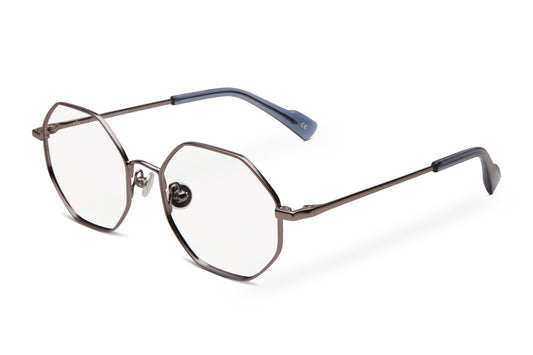 Metallbågarna i Småa-kollektionen kommer alla med en skalmtipp gjord av vår up-cyclade acetat, som tillför både komfort och en färglad detalj.