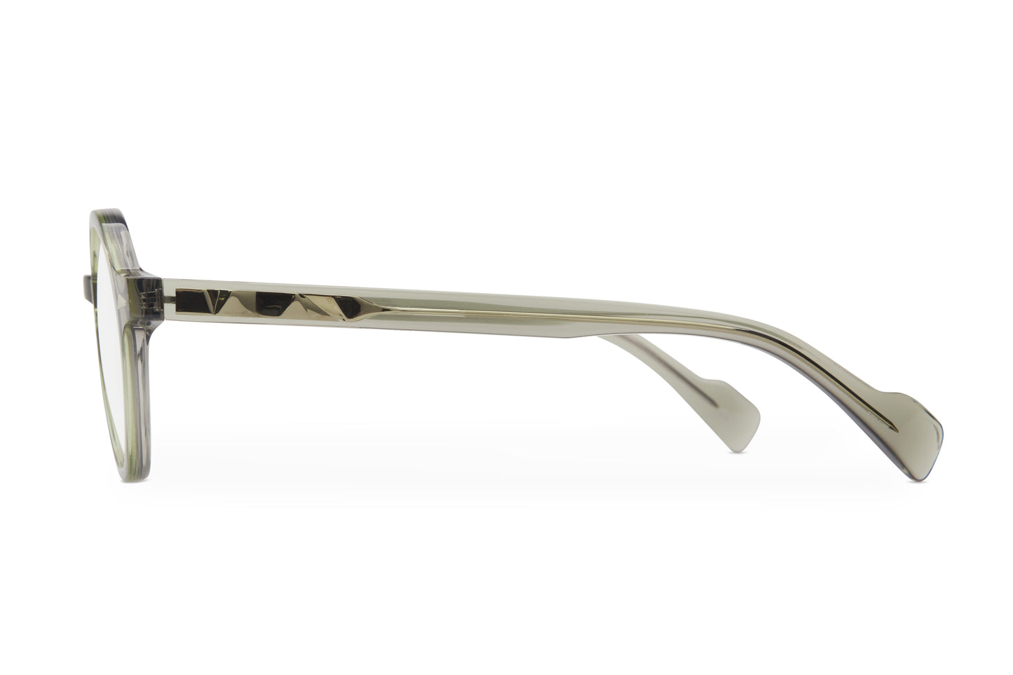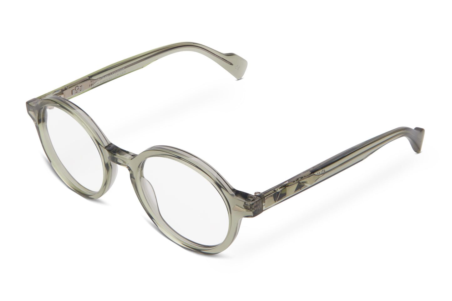 ATLAS är en lätt, rund båge tillverkad av biologiskt nedbrytbar acetat och återvunnet svenskt stål. Fronten pryds av inlägg tillverkade av hållbart och etiskt insamlat renhorn.