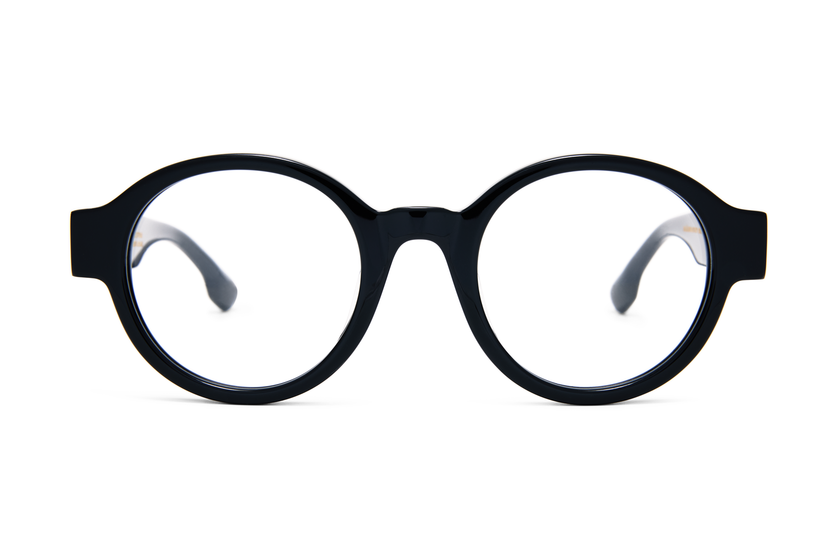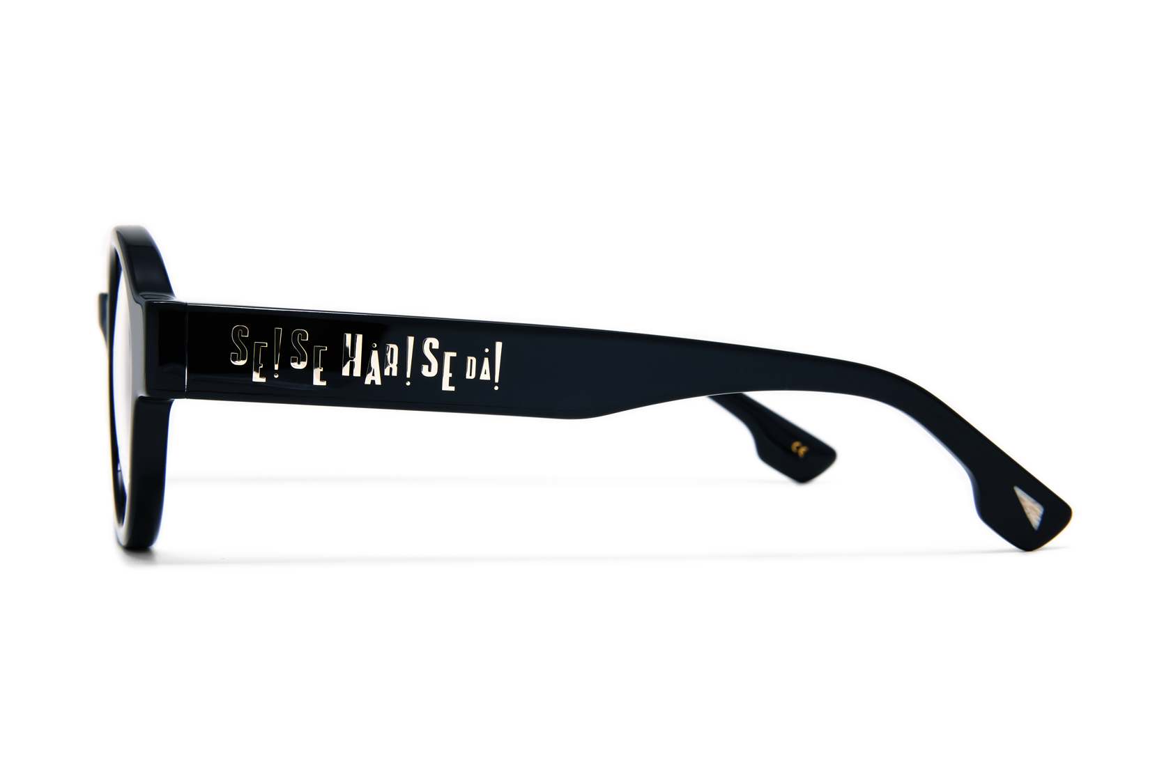BALÅLIDEN AUTHOR är en rund båge med ett kraftfullt uttryck, tillverkad i bio-acetat. Ändtipparna är prydda med triangulära inlägg av hållbart och etiskt insamlat renhorn.