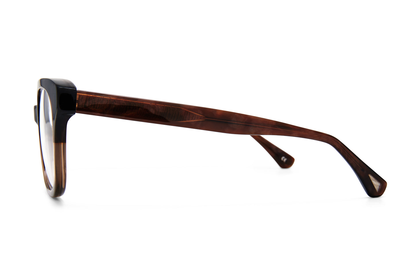 BÖRS är en något överdimensionerad båge tillverkad av vår cirkulära acetat Regrind och återvunnet svenskt stål. Ändtipparna pryds av inlägg av hållbart och etiskt insamlat renhorn.