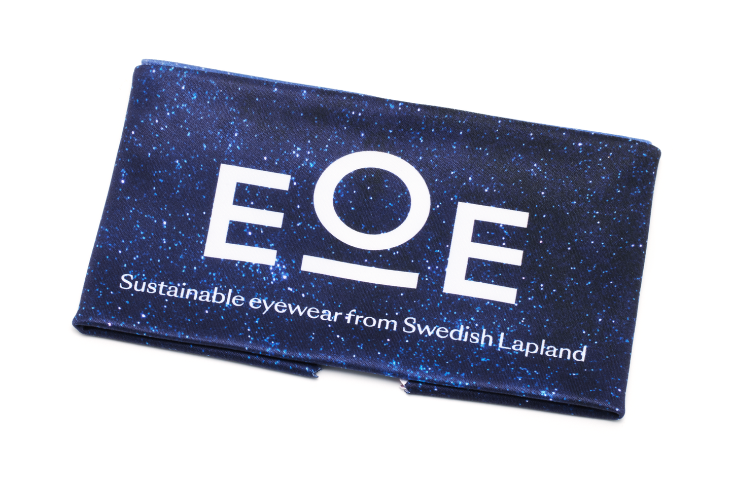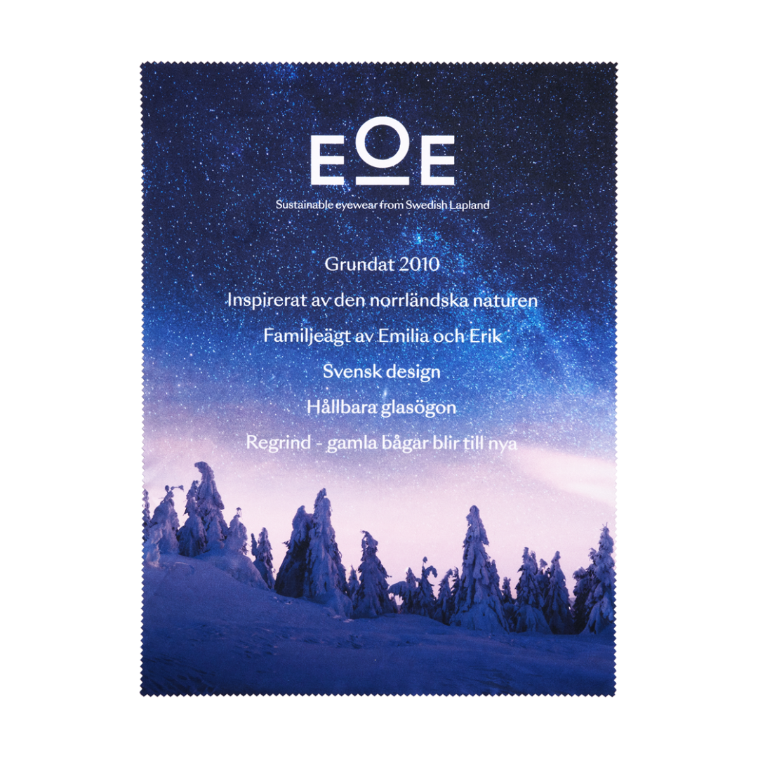 Putsduk i mikrofiber med beskrivande text om EOE Eyewear