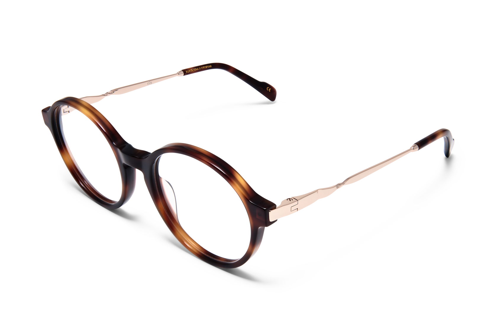 HERTSÅNGER ROUND TWIST är en rund båge tillverkad i bio-acetat och svenskt återvunnet stål. Skalmarna har en tvistad detalj inspirerad av formen på en gren.