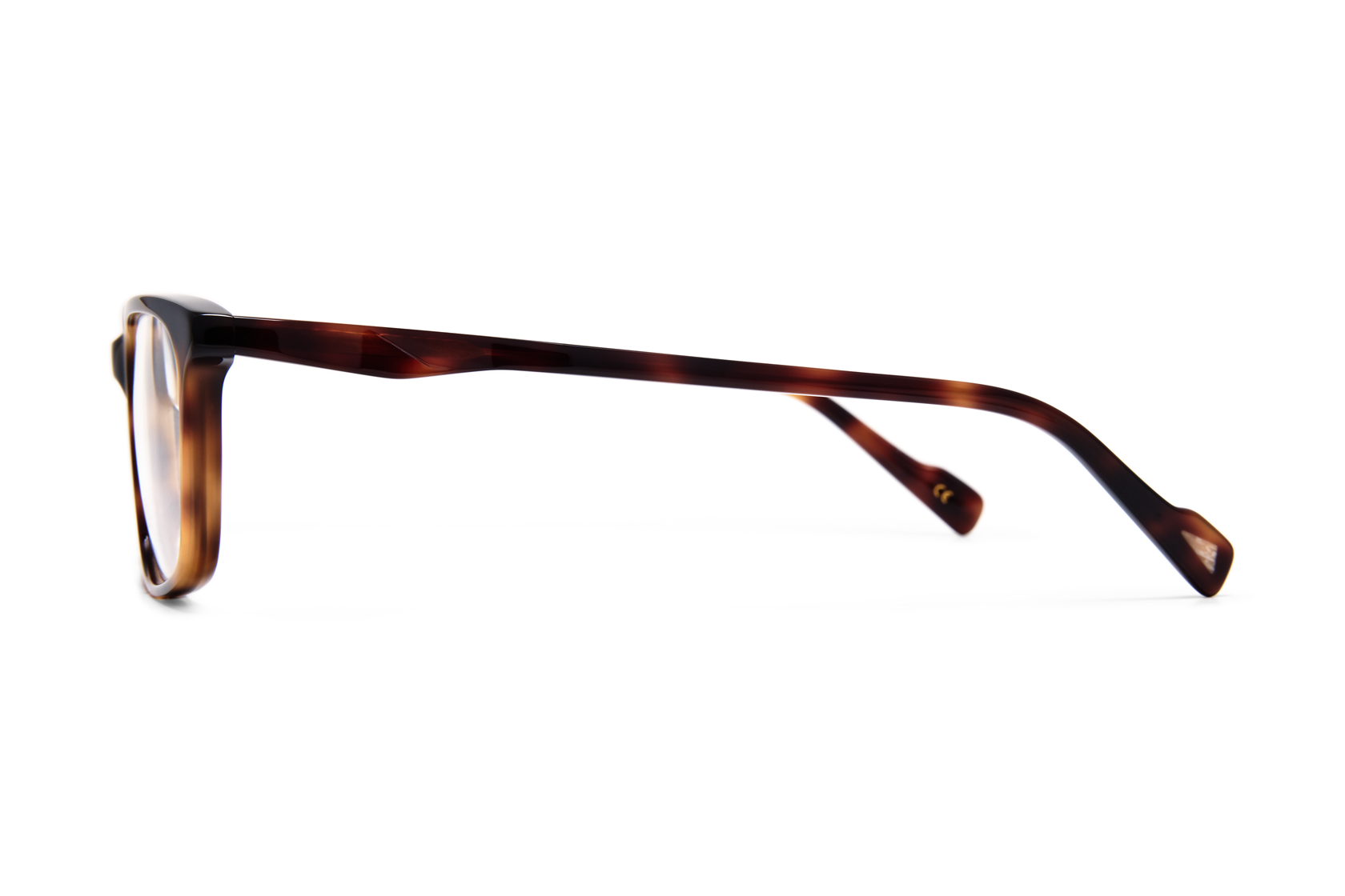 LJUNG är en lätt, rektangulär båge med ett sportigt och skarpt uttryck. Den är tillverkad i bioacetat och pryds av en snidad detalj vid skalmen. Bågens ändtippar är dekorerade med triangulära inlägg av hållbart och etiskt insamlat renhorn.