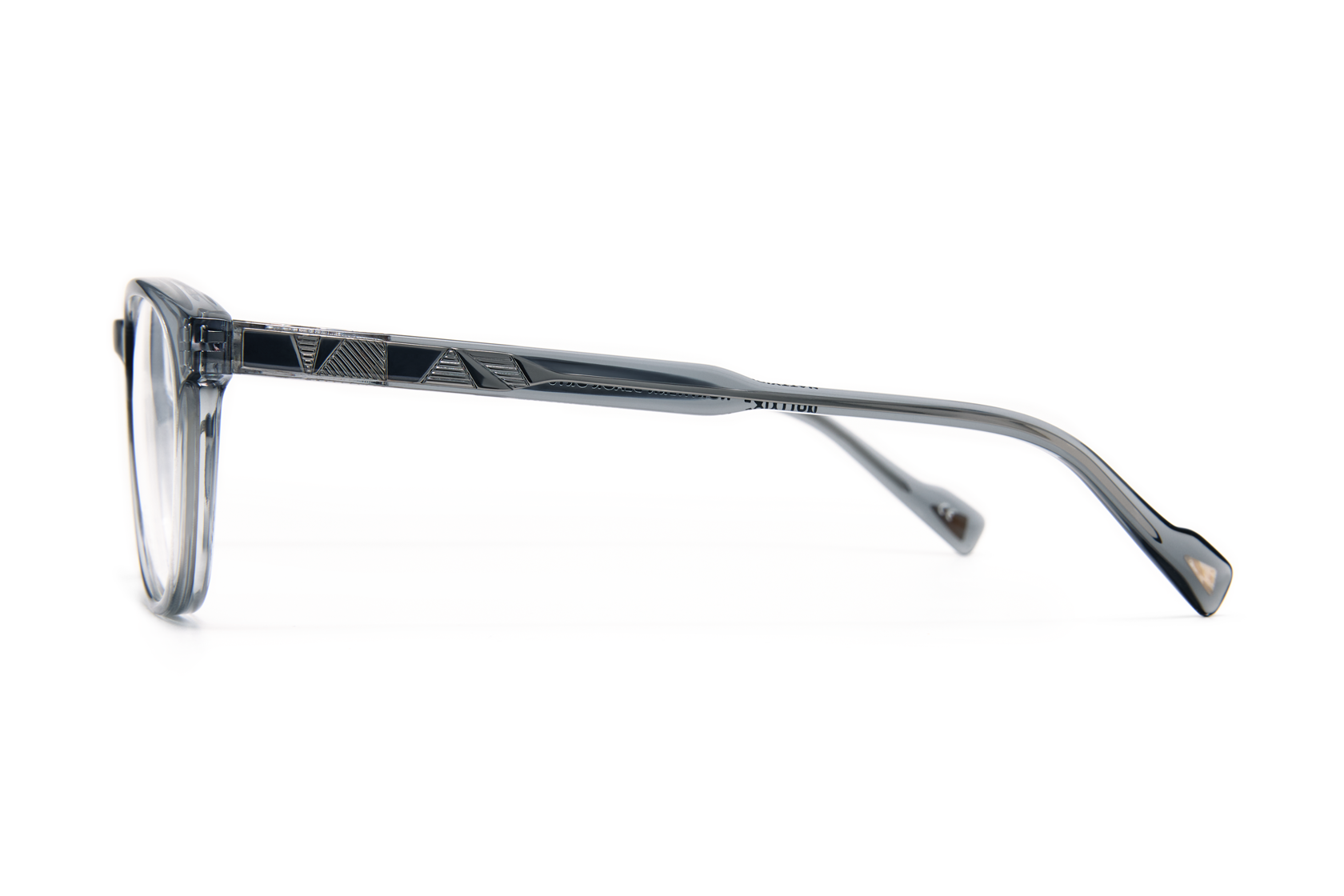 NATTVIOL är tillverkad i bio-acetat och återvunnet svenskt stål. Skalmarna pryds av ett mönster inspirerat av en bergskedja, och bågens ändtippar är dekorerade med triangulära inlägg av hållbart och etiskt insamlat renhorn.