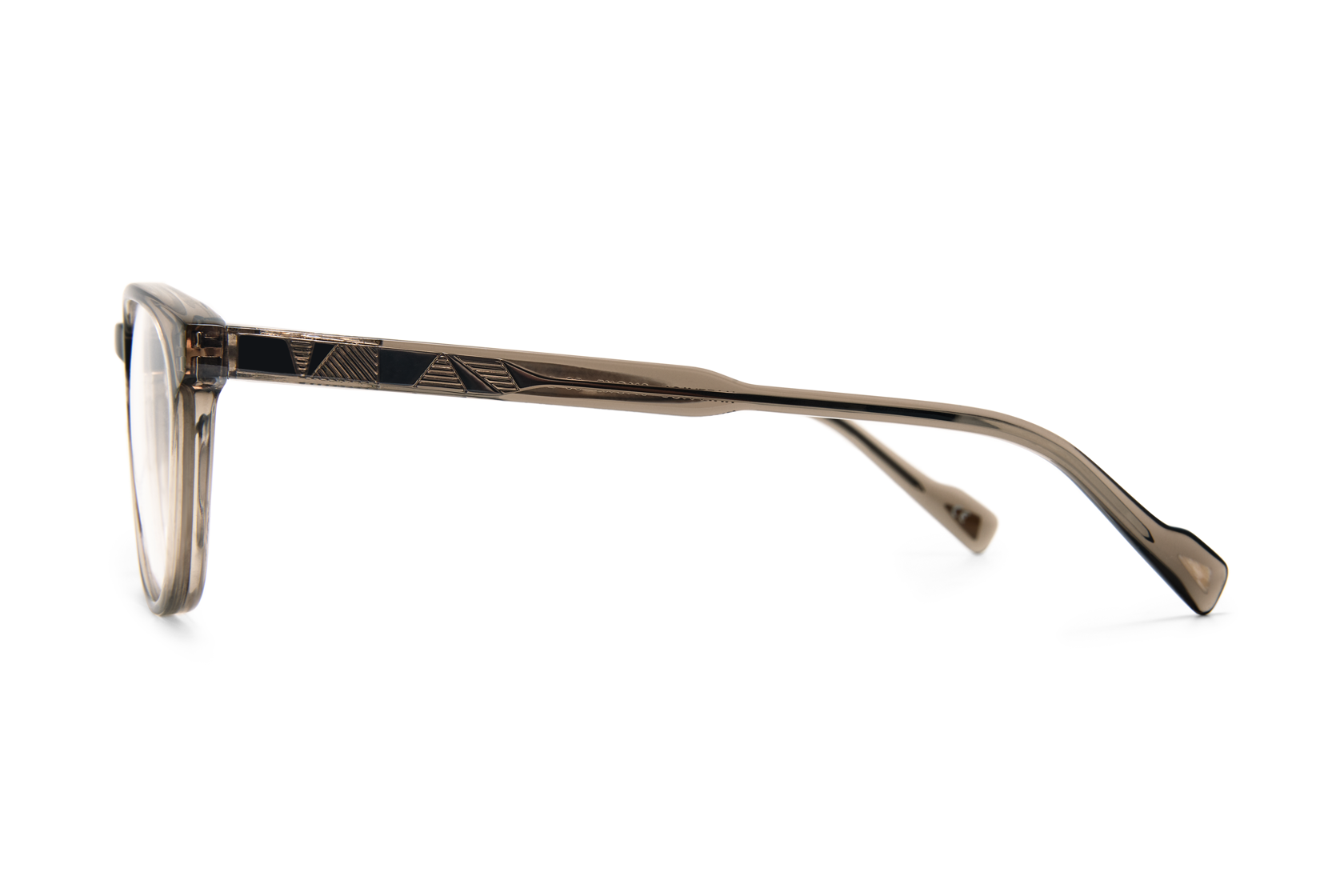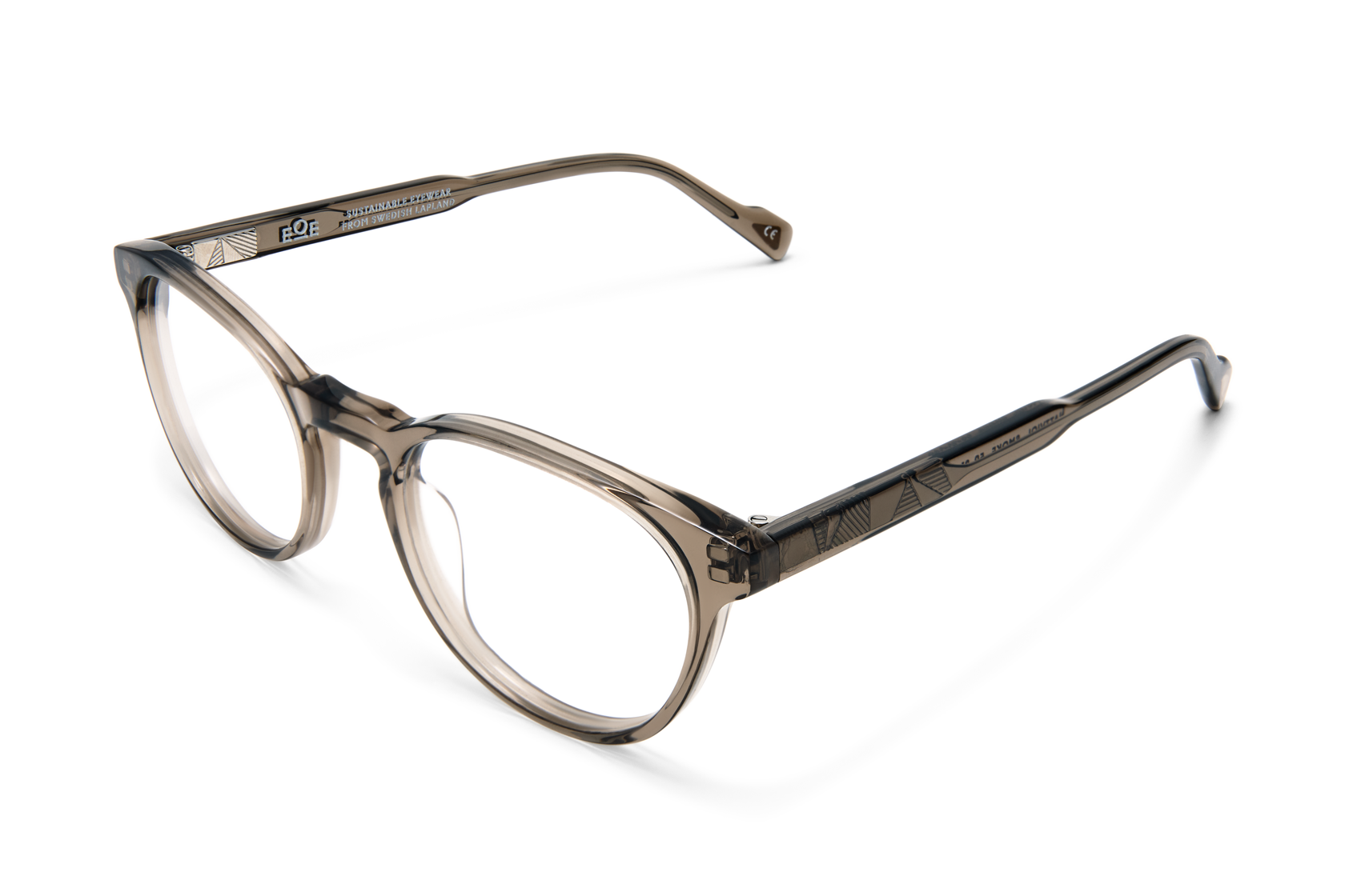 NATTVIOL är tillverkad i bio-acetat och återvunnet svenskt stål. Skalmarna pryds av ett mönster inspirerat av en bergskedja, och bågens ändtippar är dekorerade med triangulära inlägg av hållbart och etiskt insamlat renhorn.