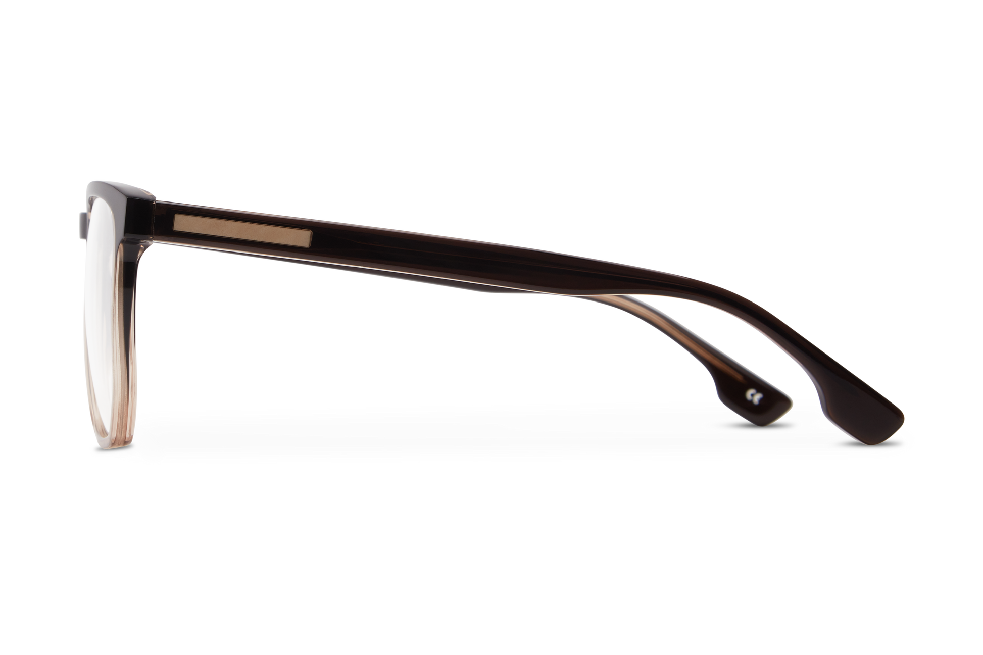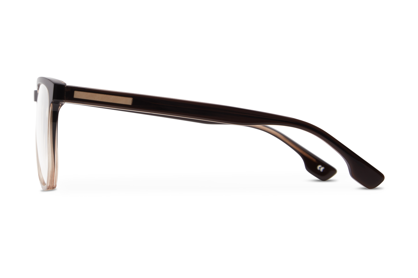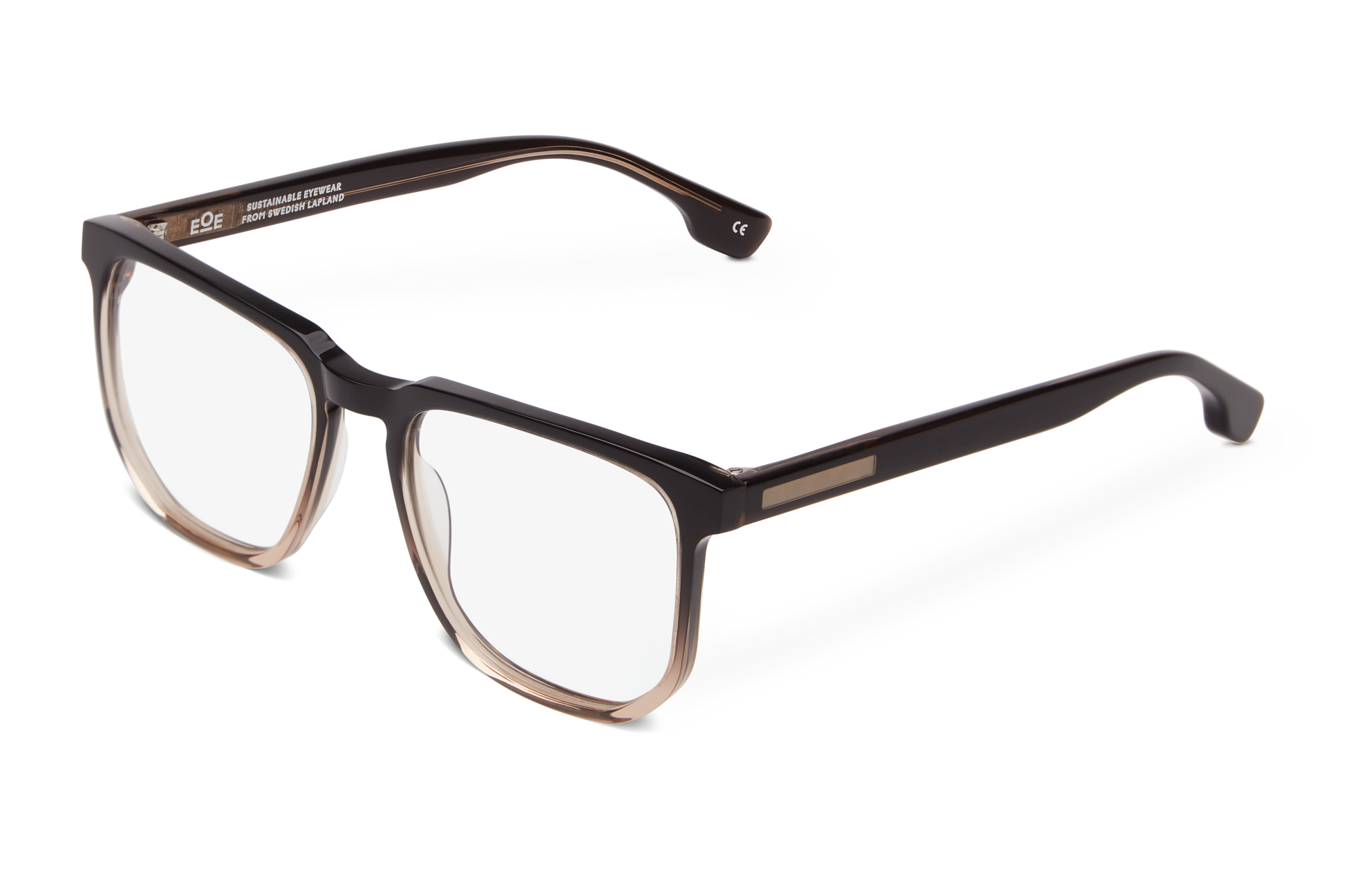 TÄRNABY är en stor fyrkantig båge tillverkad av biologiskt nedbrytbar acetat och återvunnet svenskt stål. Skalmen har inlägg av hållbart och etiskt insamlat renhorn.