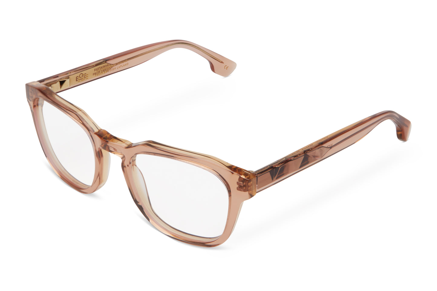 VITTANGI är en lätt fyrkantig båge tillverkad av biologiskt nedbrytbar acetat och återvunnet svenskt stål. Skalmen har EOE:s Mountain core-mönster, inspirerat av silhuetten av en bergskedja.